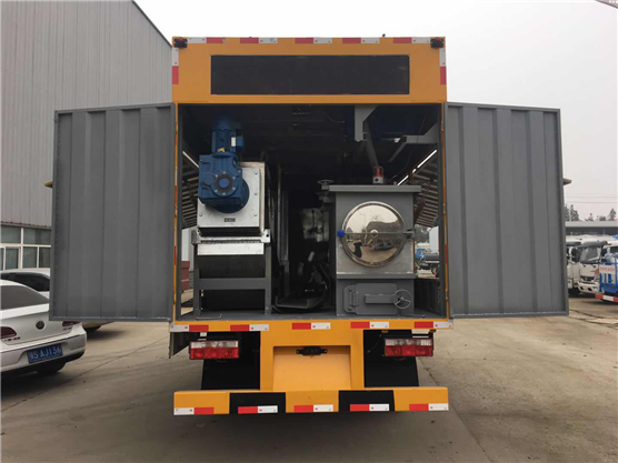 結(jié)    構(gòu):廂式結(jié)構(gòu),內(nèi)部主要固定裝置為:發(fā)電機(jī)、真空泵、排污泵、分離箱、污水箱、加藥箱、混凝槽、疊螺機(jī)。