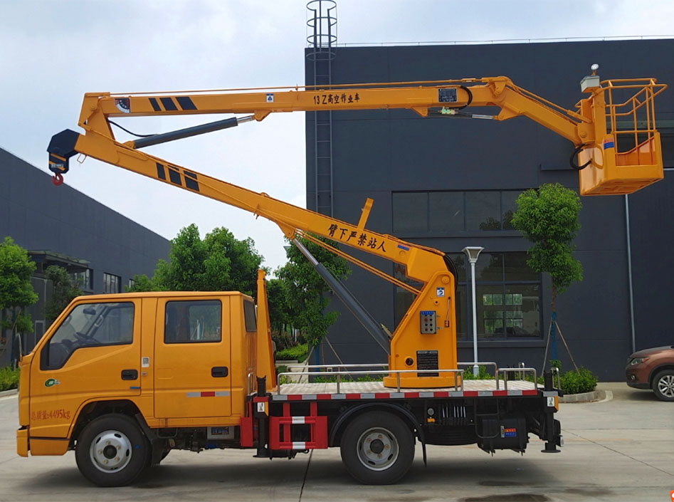 國六江鈴雙排13米藍(lán)牌曲臂高空作業(yè)車改裝配置:液壓360度全回轉(zhuǎn),三節(jié)折疊臂,單液壓舉升缸,帶雙向平衡閥,帶電控操作舉升臂, 四支液壓油缸可調(diào)式支腿帶雙向液壓鎖(支腿操作為手動(dòng)操作,可單獨(dú)**),上下二套操作臺(tái),帶 1 噸吊鉤,**作業(yè)高度 13米,**作業(yè)半徑 5.6 米,**起吊重量1噸。